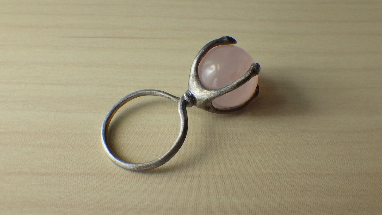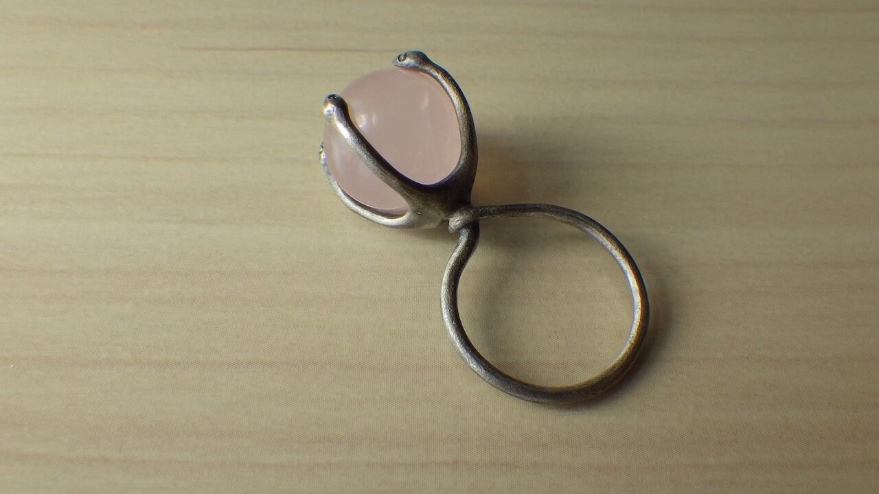 ギリシャ神話に登場するヒュドラ(多頭蛇)をモチーフにした指輪です。使用した宝石はローズクォーツです。