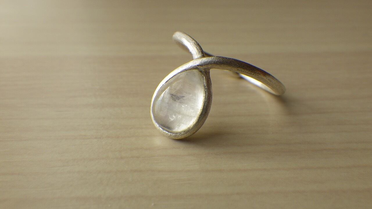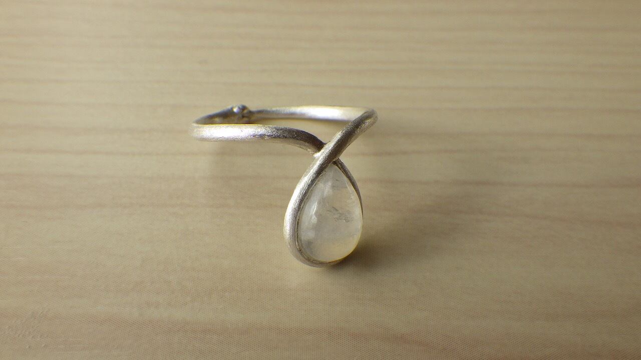 ムーンストーンに巻きつくウロボロス(尾を飲み込む蛇)をモチーフにした指輪です。