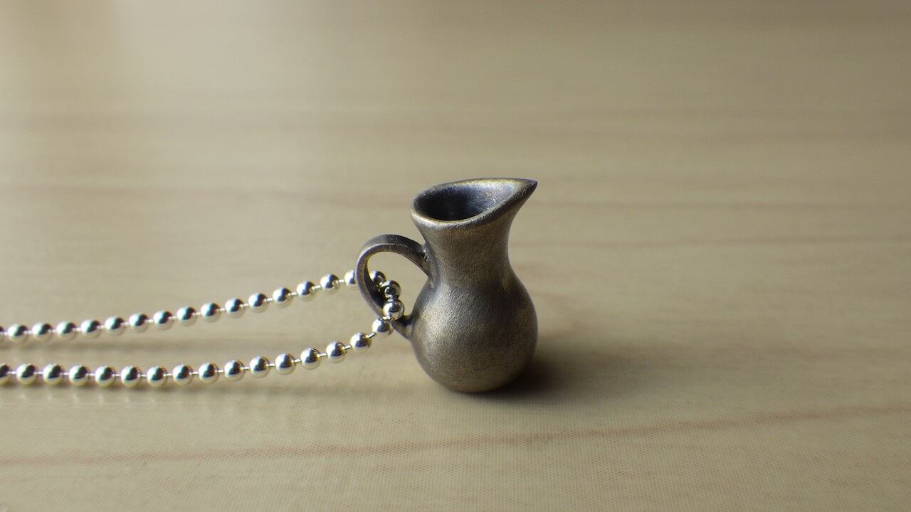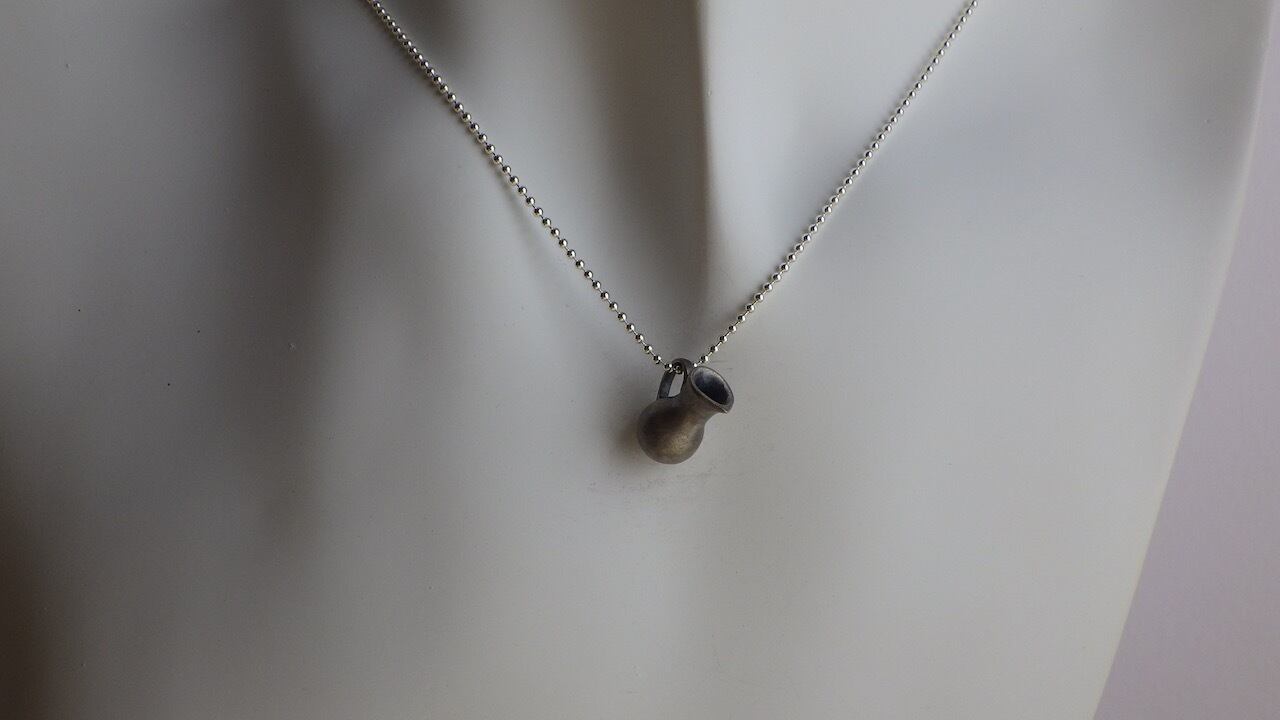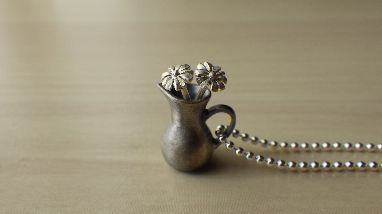 花瓶をモチーフにしたペンダントです。花瓶に生けた花はピアスとして使用できます。