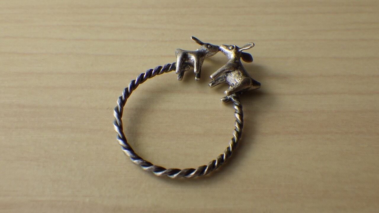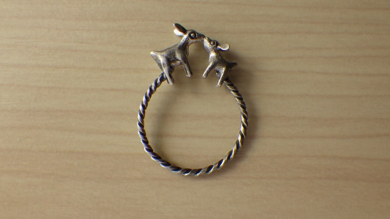 臍帯(へその緒)で繋がった鹿の親子をモチーフにした指輪です。 【素材】 SV925 【サイズ】 12〜14号
