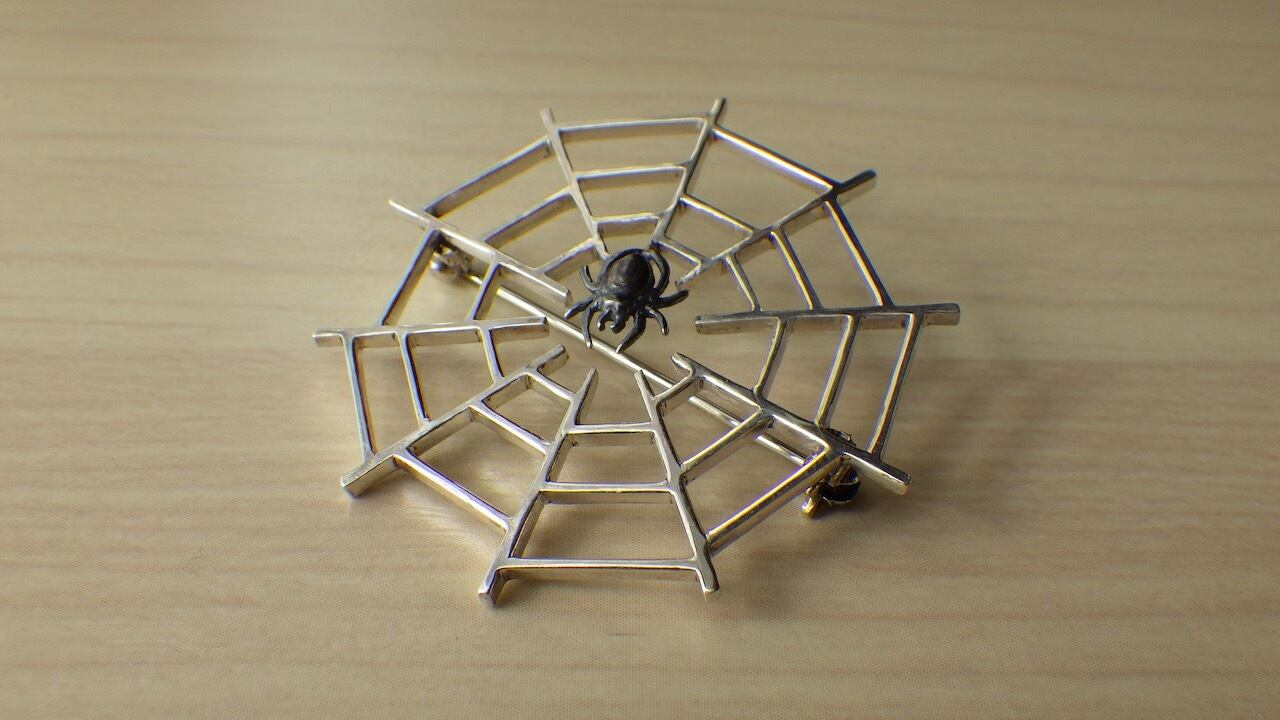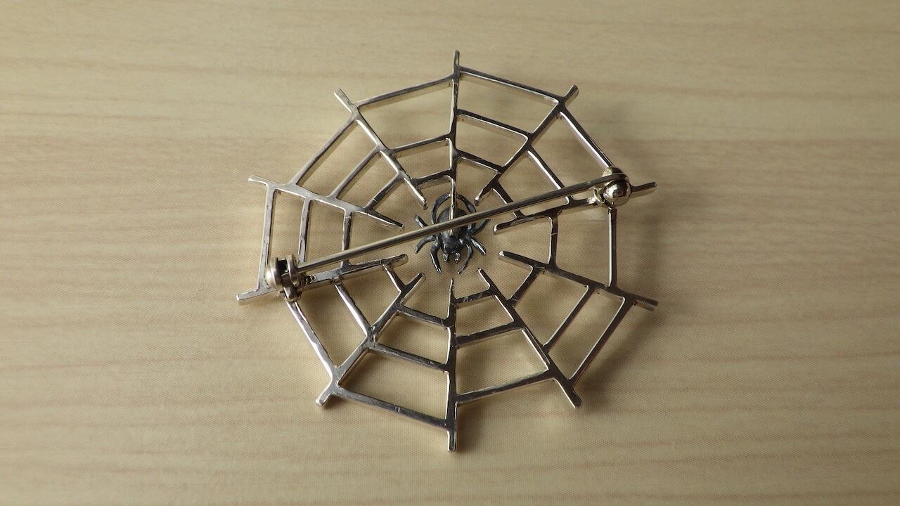 蜘蛛の巣をモチーフにしたブローチです。蜘蛛の巣は放射状のあみだくじになっています。