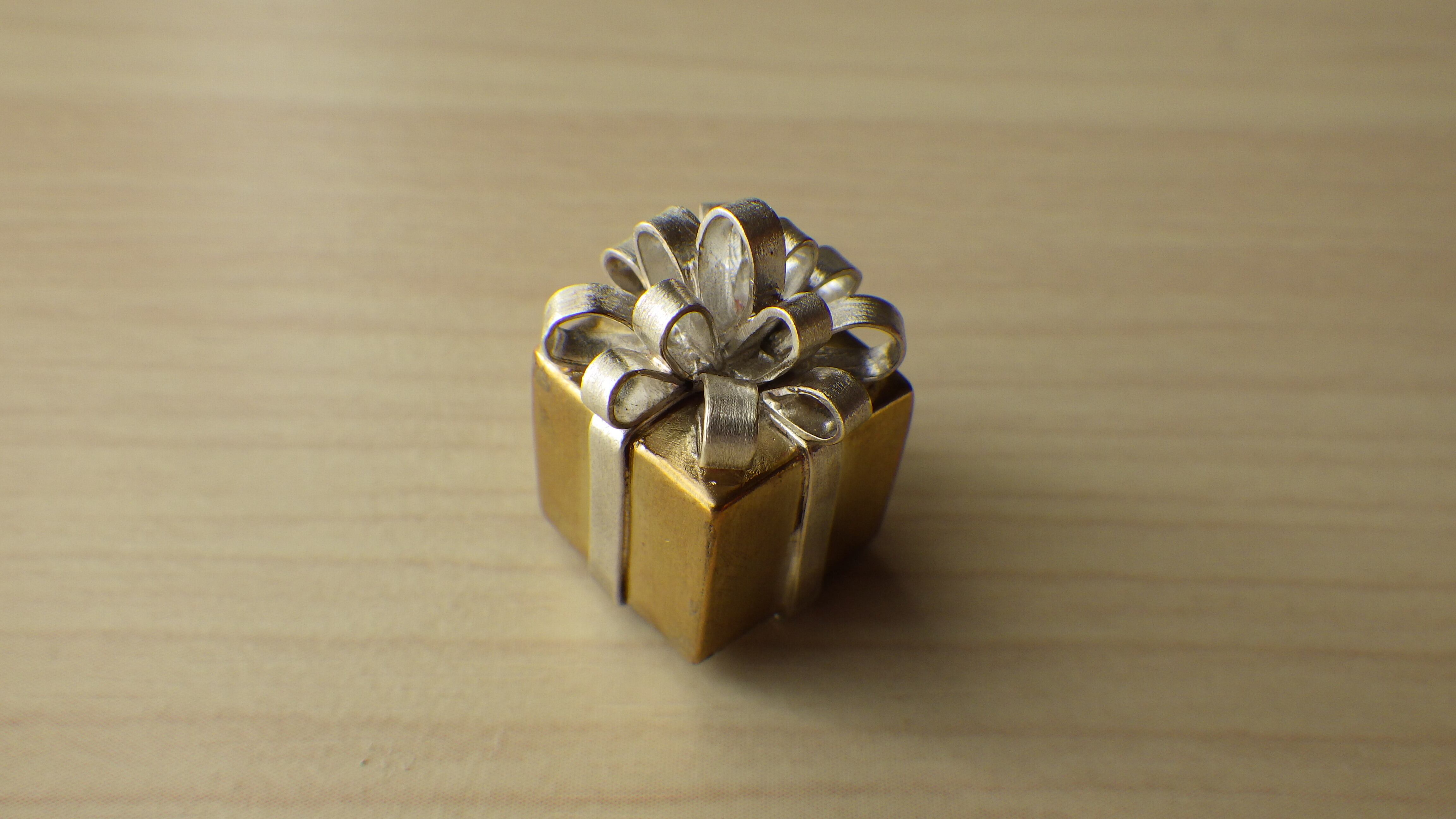 リボンを掛けたギフトボックスをモチーフにしたペンダントです。