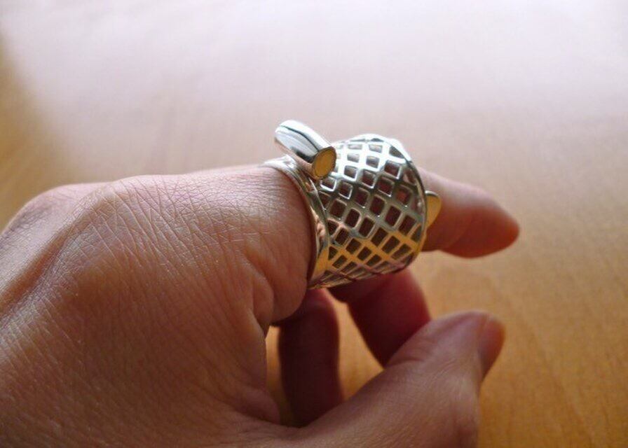 公園で見かけるゴミ箱をモチーフにした指輪です。