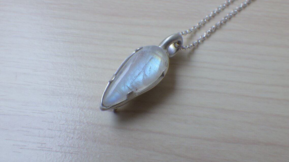 胸元で揺れるたびに妖しく光る様子はまさに『月のかけら』を身に着けているかのようです。