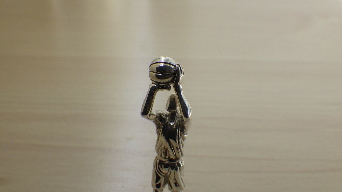 シュートを打つバスケットボール選手をモチーフにしたペンダントです。